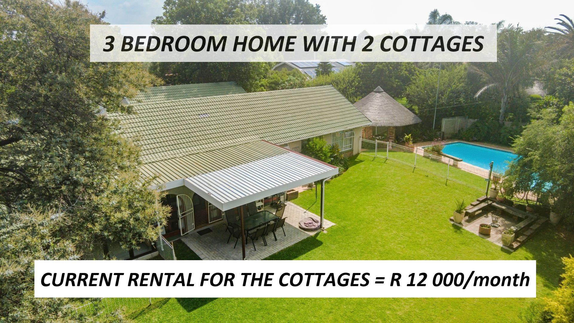 The property also includes two separate cottages, ideal for rental income, extended family accommodation, or guest use.