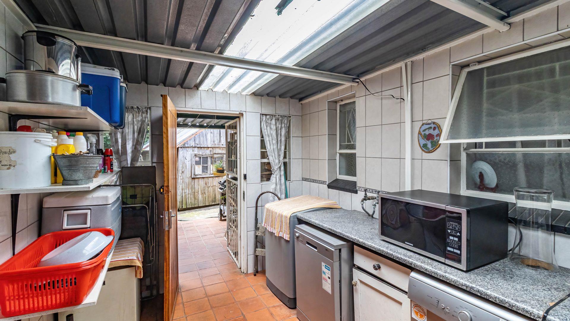 Outdoor entertainment is a standout feature, offering a sparkling swimming pool, a lapa with built-in bar, and a large Zozo hut, perfect for hosting guests or creating additional recreational space.