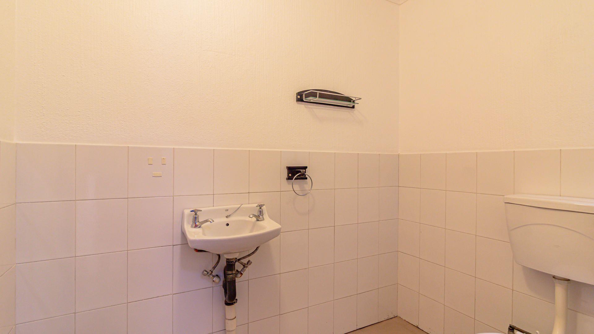 A compact kitchenette with a sink and a private bathroom ensure added practicality for staff and visitors.