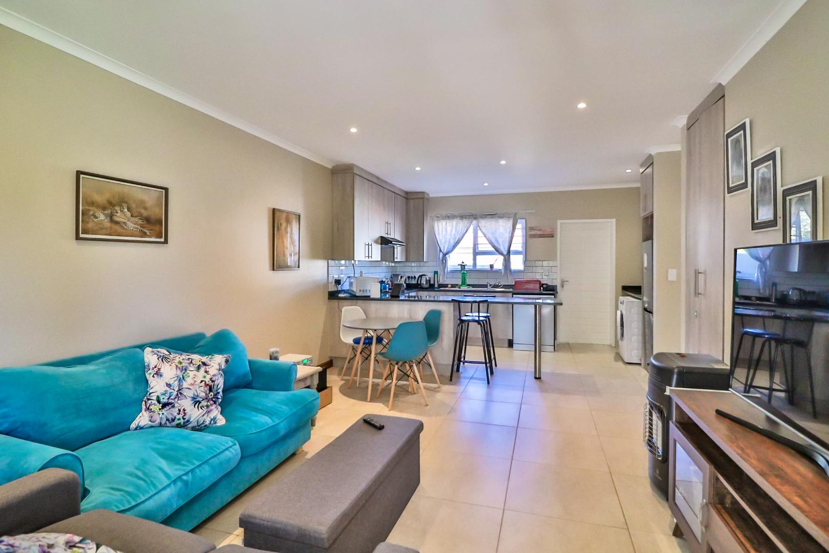 One bedroom apartment with modern finishes and very spacious living areas. The bedroom has large built in cupboards with on suite bathroom with a walk in shower. Kitchen with granite tops, ample work tops and space for washing machine, tumble dryer and dish washer as well as space for a fridge. Linen cupboard for more storage. Perfect lounge/dining area that leads onto a huge covered patio over looking your own enclosed private garden. Gas geyser, prepaid electricity and water and NO levy fees. Under cover carport and visitors parking. Pet friendly. You can arrange your own internet provider as the street is Vumatel ready. Available end of November