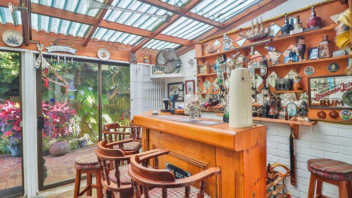 Live and work from a versatile property in a sought-after neighbourhood, featuring a separate one-bedroom cottage, pool and jacuzzi, built-in bar, five bedrooms, three bathrooms and double garage.