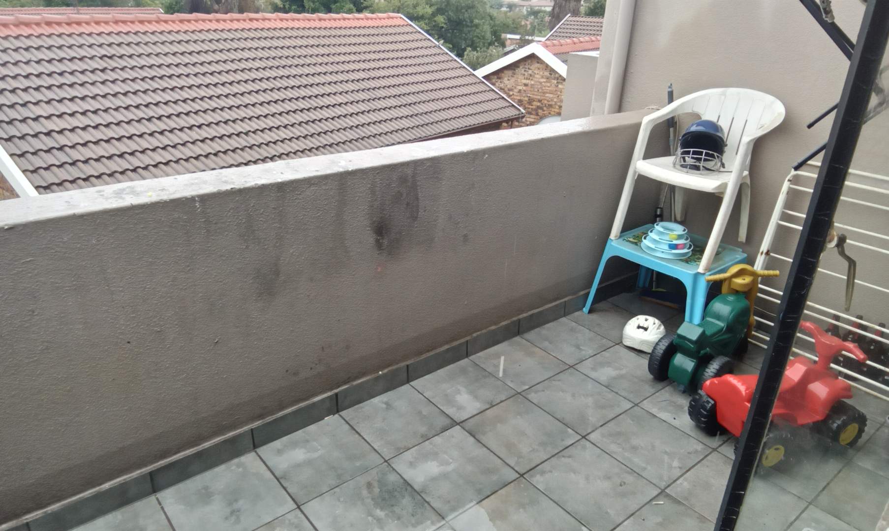 * Private balcony with storage