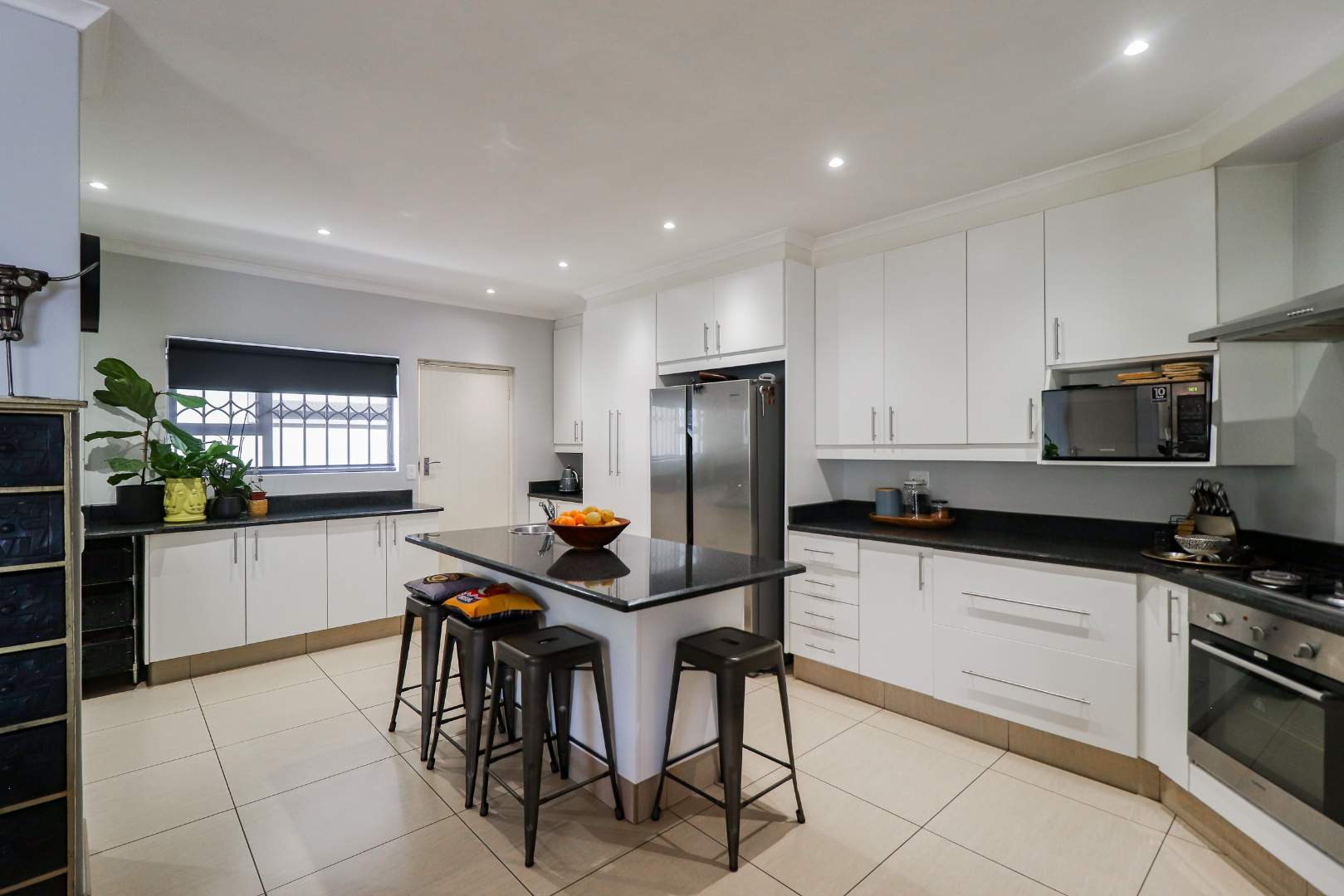 The garden is well maintained and has an inviting entertainment area with a built in braai and has a roof cover for protection from sun or rain.
