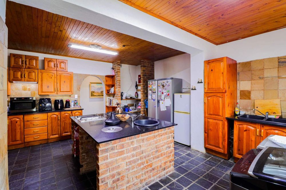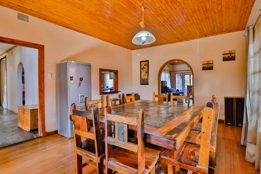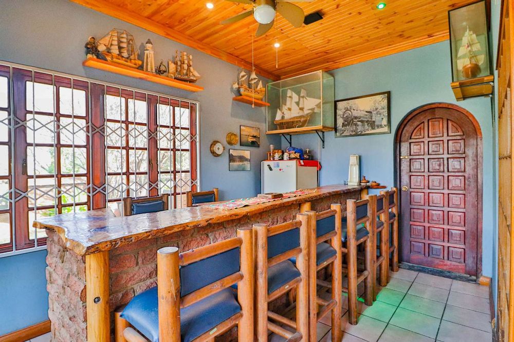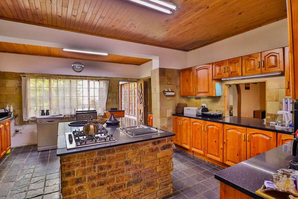 Bar area, spacious lounge, large dining room area, well sized and equipped kitchen with a gas stove and spacious counter tops and cupboards.
