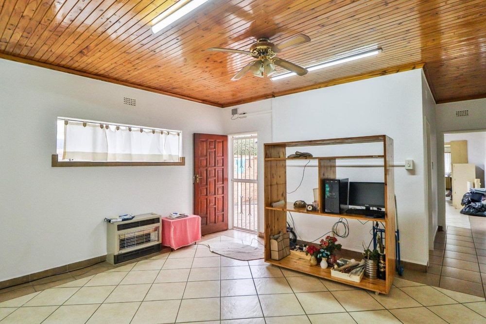 The fully tiled lounge has security and sliding doors opening onto the pool/garden area as well as the enclosed atrium which has a braai facility.