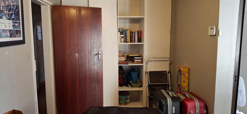 1 x Large Main Bedroom – with built in cupboards and an en-suite bathroom, full linen cupboard, bath, basin, and toilet