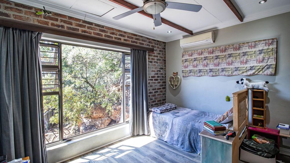 The home features two inviting living areas, including a spacious open-plan lounge and dining room flowing seamlessly from the kitchen. A cosy fireplace and indoor braai ensure comfort during chilly Highveld evenings, making every day feel special.