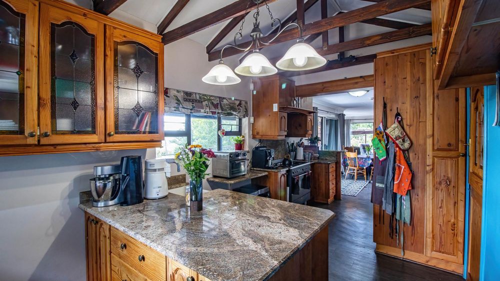 A modern, well-designed kitchen with granite countertops and a separate scullery awaits the homemaker, offering both style and practicality.