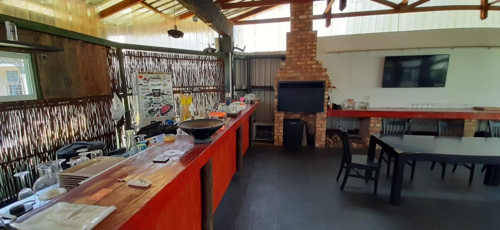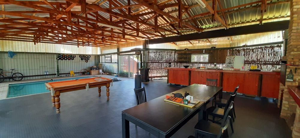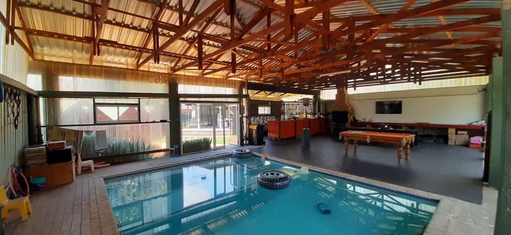 Enclosed entertainment area with a pool and bar area for all year round enjoyment