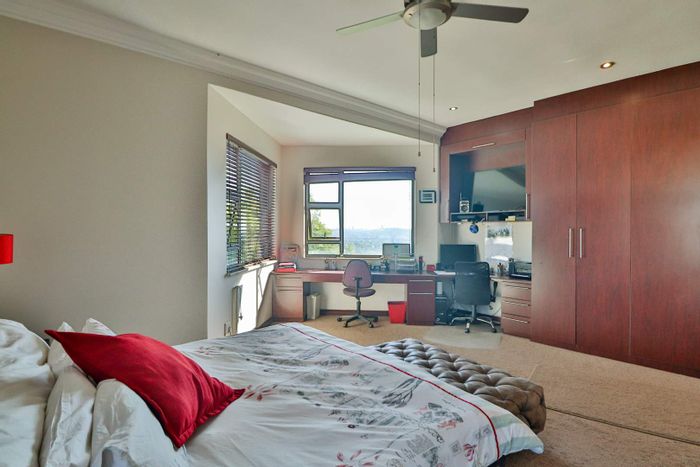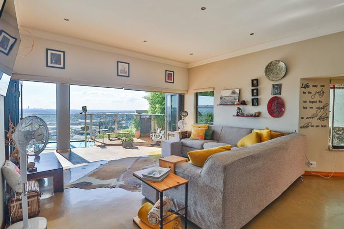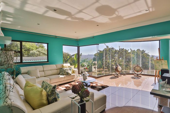 Entertain effortlessly in Kloofendal with a leafy private garden, built-in bar and large pool, walking distance to Kloofendal Nature Reserve; includes one-bed flatlet, five bedrooms, three baths.