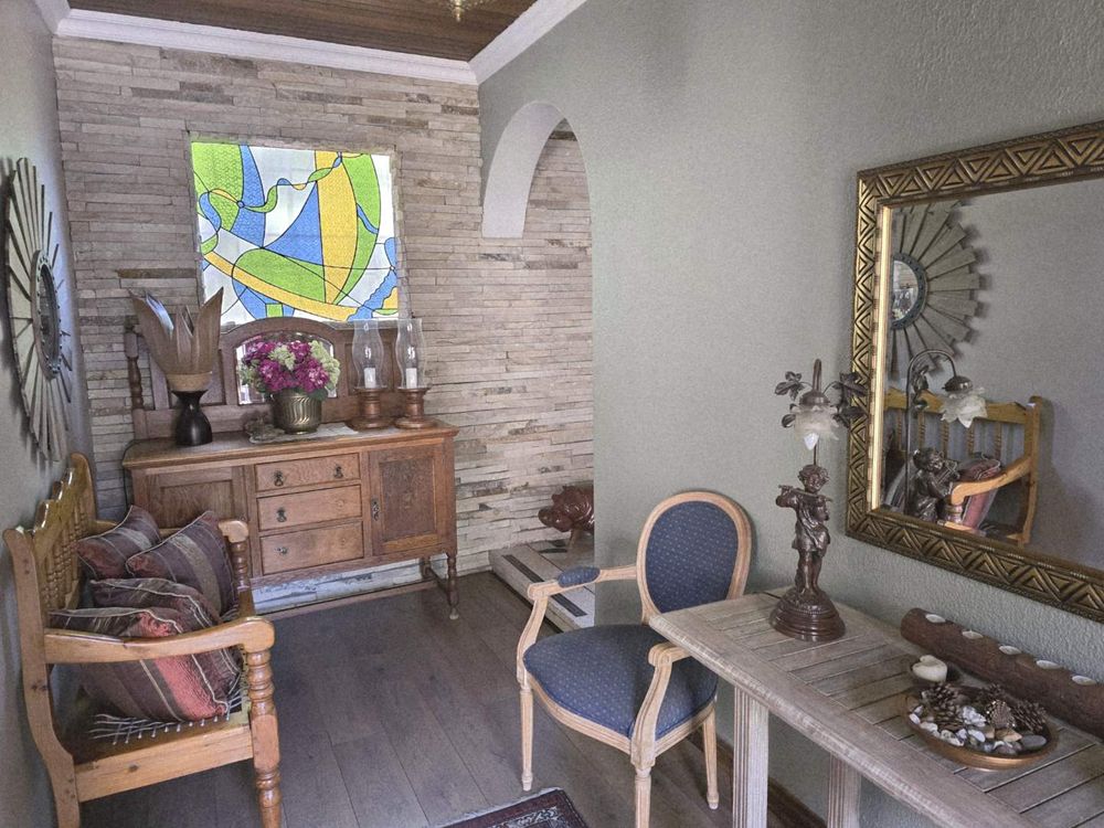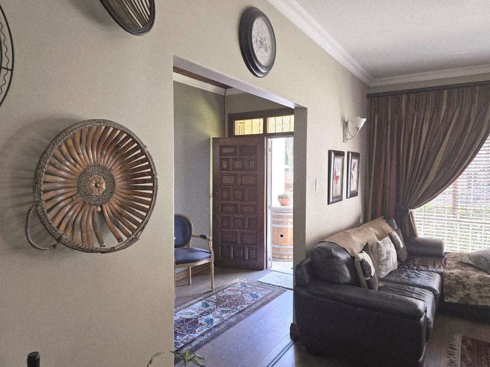 R 3 490 000. Features a study, 2 lounges, luxury lapa, pool, and parking for 8 vehicles in a garden visited by exotic birds.