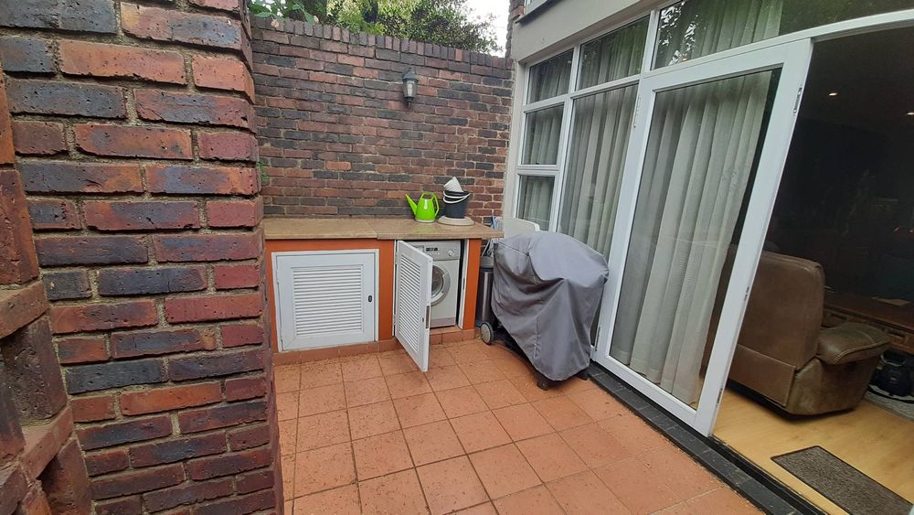 The door that leads off the lounge onto the patio has a built in area for your washing machine and tumble drier.