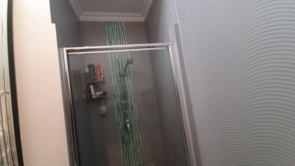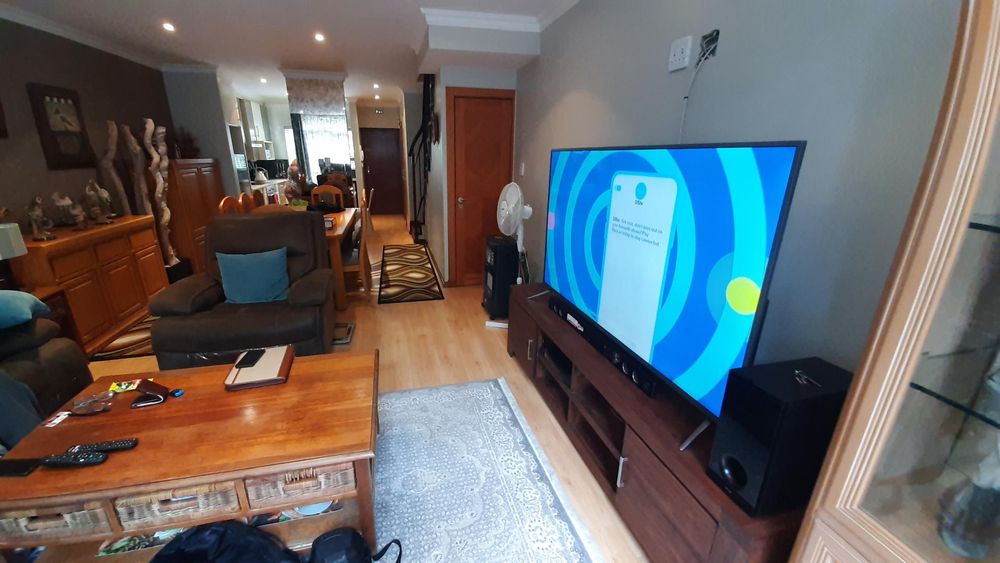 The lounge is very cozy and fits a 6 seated lounge suite with a TV unit and middle table.