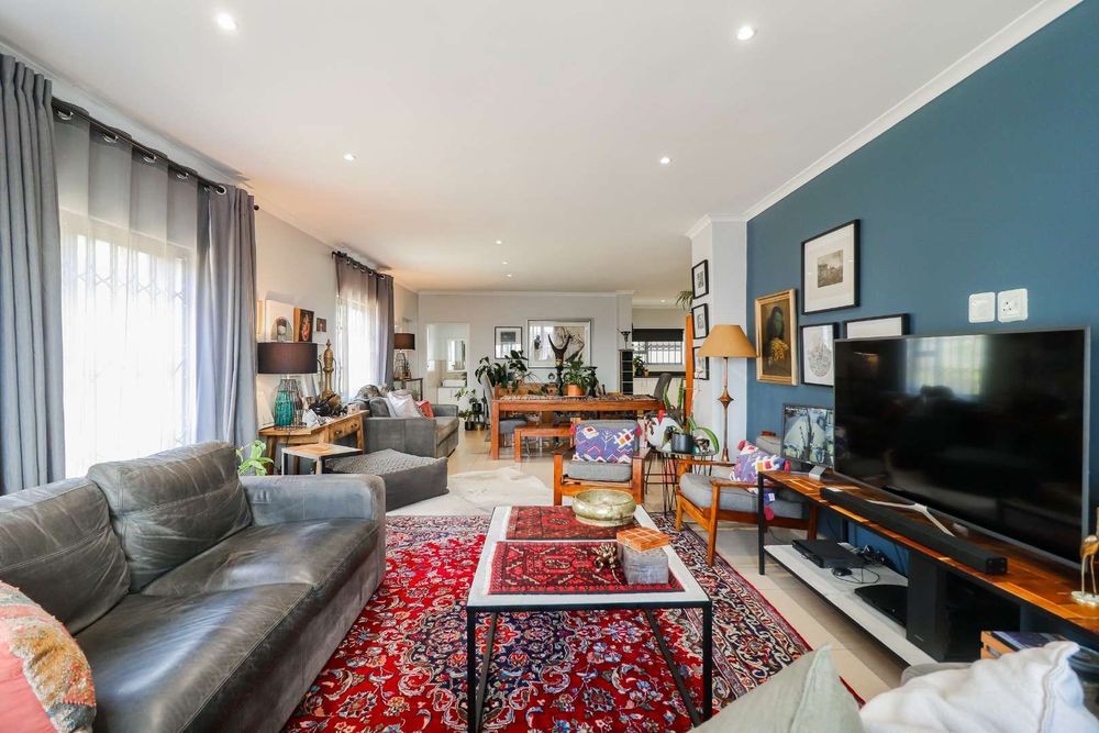 The kitchen leads into the dining area and comfortable lounge with a guest toilet for convenience.