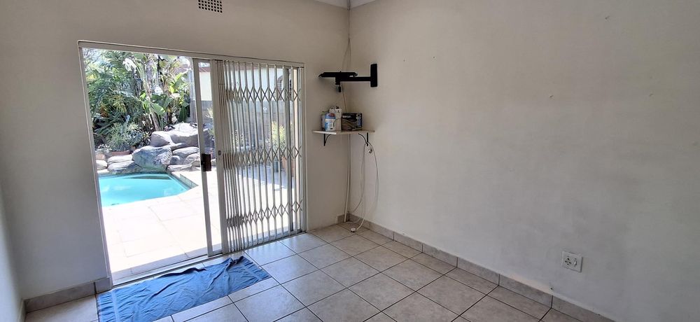 Backyard Living Quarters: A tiled living space with 1 bedroom and bathroom, ideal for guests or staff.